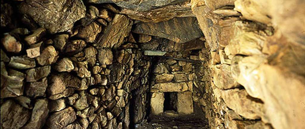 Roofed and walled in stone, this complex of passages is the largest and best-preserved of several mysterious underground tunnels associated with Cornish Iron Age settlements. The purpose of such ‘fogous’ – a Cornish-language word meaning cave – is unknown, but they may have been places of refuge, storage chambers or ritual shrines. Halliggye Fogou, thought to date from the 5th or 4th century BC, was once part of a small farming settlement, which was probably occupied until the end of the Roman period.