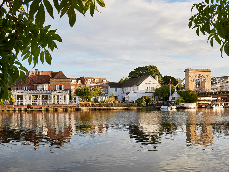 Experience the shimmering tranquillity of the riverside and the dramatic rush of the Marlow Weir in one panoramic sweep across the lawns of the fabulous, four-star, Compleat Angler. Located on the willow-fringed banks of the River Thames, our luxury hotel in Marlow is just 20 minutes’ drive from Heathrow Airport and with speedy train connections, Central London is just over an hour’s journey – if you can tear yourself away from this idyllic Buckinghamshire setting.