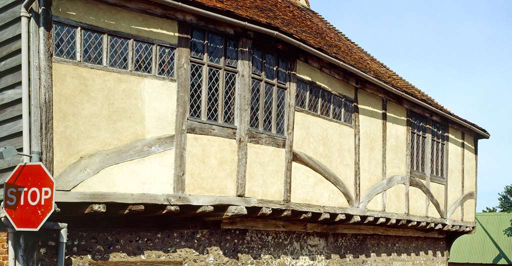 Originating as a 13th-century wayside hospital, this flint and timber-framed building now displays Roman objects from nearby sites.