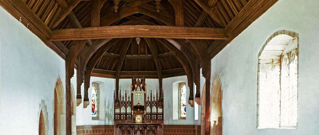 Rotherwas was the family chapel of the Roman Catholic Bodenham family. The originally simple medieval building has a fine Elizabethan timber roof, a rebuilt 18th century tower, and striking Victorian interior decoration and furnishings by the Pugins.